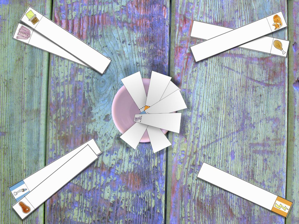 En ¡Cuidado con un rayo! – Dígrafos la meta es sacar muchos palitos para lograr la mayor cantidad de puntos posible! Pero,debes sacarlos con cuidado. ¡Si uno de los palitos contiene un rayo perderás todos tus palitos! Ten cuidado y buena suerte.